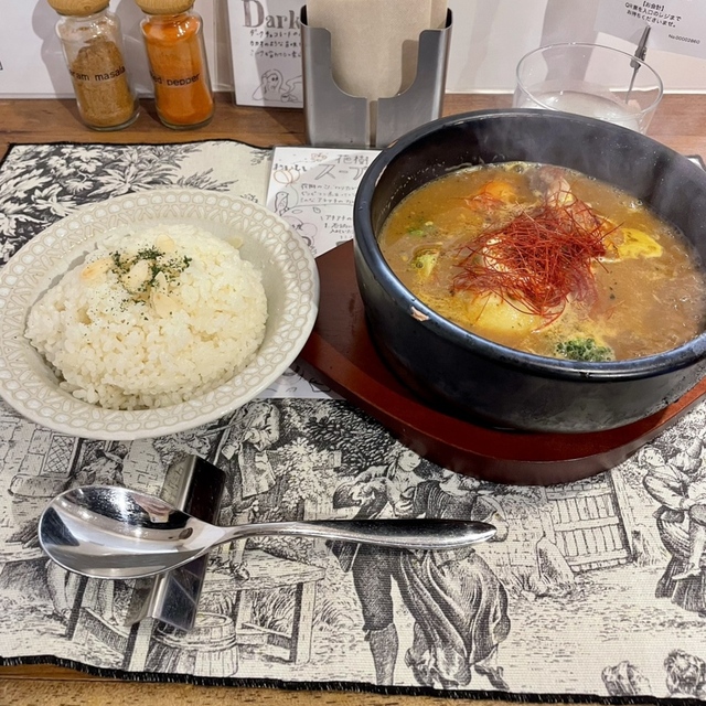 こちらのお店は、石鍋で提供されるスープカレーが売りで、ぐつぐつ煮立てられながら運ばれる熱々の状態で食べることができます。