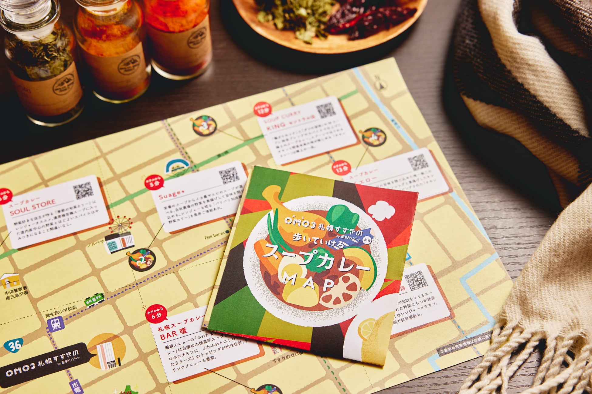アペロミーティングの参加者には、スープカレーマップをプレゼント!実際にOMOレンジャーが足を運び、食べ歩いて選定したおすすめのスープカレーのお店を掲載されています。スープカレーやラッシーの豆知識、お店ごとのこだわり情報が掲載されているため、マップを片手に、すすきの散策を楽しみながらお気に入りのお店を見つけよう!