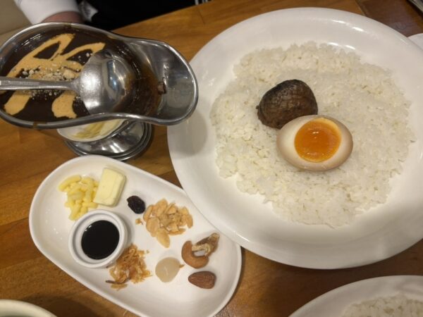 私はチキンと日替わりの2種盛カレーを、友達はおろし醤油ポークのカレーを注文。どちらも中辛ですが、思ったよりマイルドで食べやすく、しっかり旨みを感じられる味わいでした✨